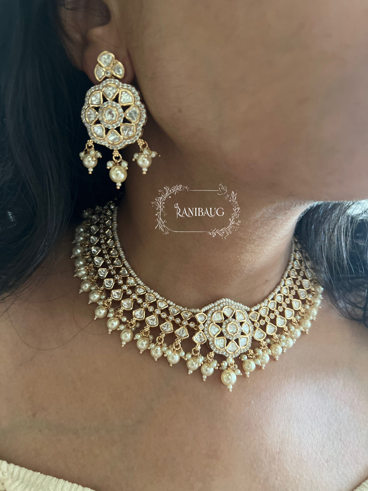 Comprehensive Polki Setting: Every flower showcases extensive uncut diamond work, where individual stones are carefully positioned to create depth and dimension within each bloom.