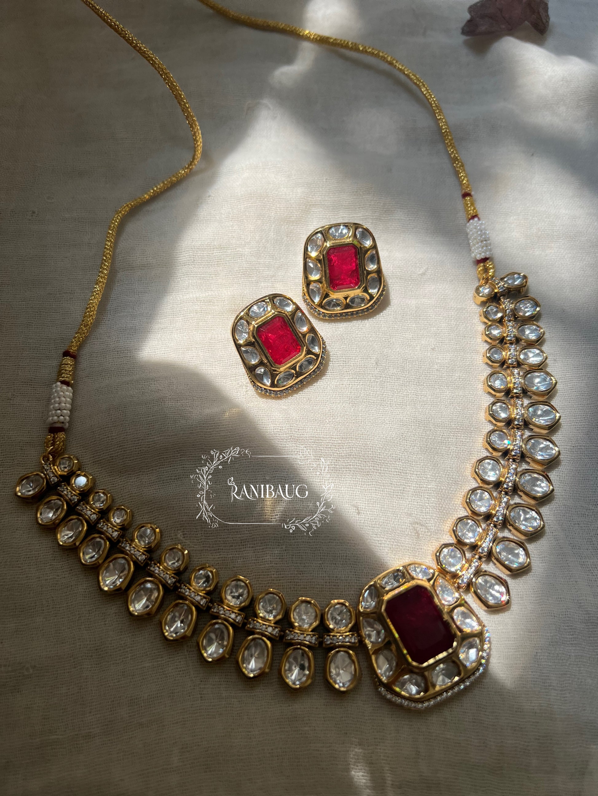 Anaya Gemstone Royal Mossainite Choker Necklace Set By Ranibaug