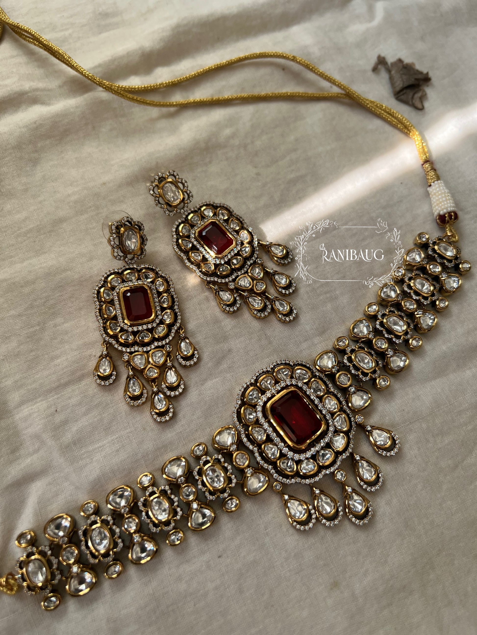 Anshika Victorian Polki Kundan Choker Necklace Set Jewellery For Women With Gemstone By Ranibaug