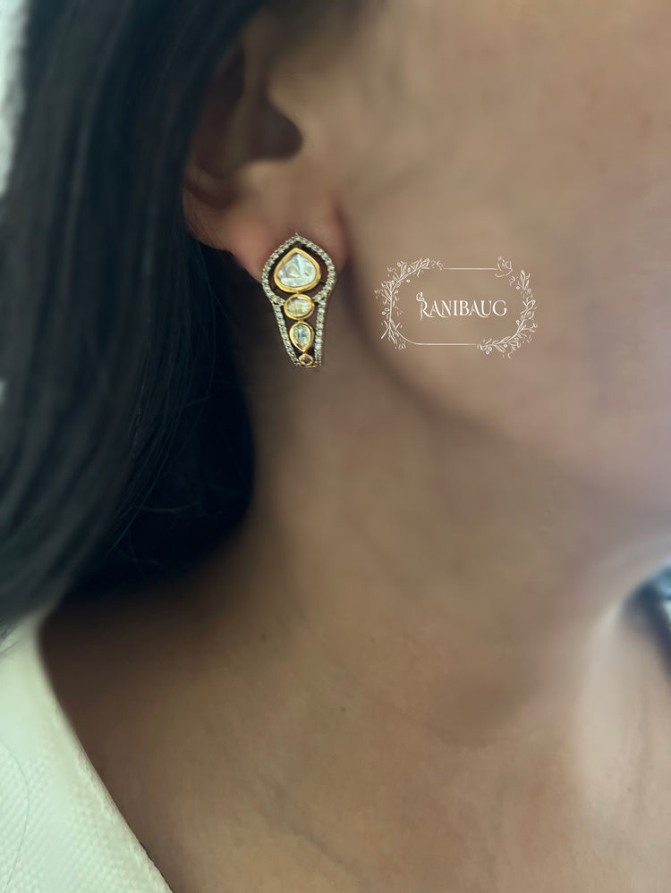 Anvi Polki Kundan Premium Gold Plated Ear Diamond Studs By Ranibaug