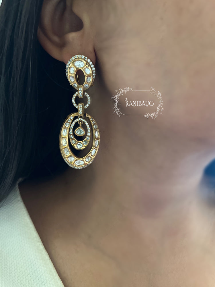 Central Suspended Gem: Inside the lower oval is a smaller hanging gem. This detail adds gentle movement and a point of focus, making the earrings look extra refined when worn.