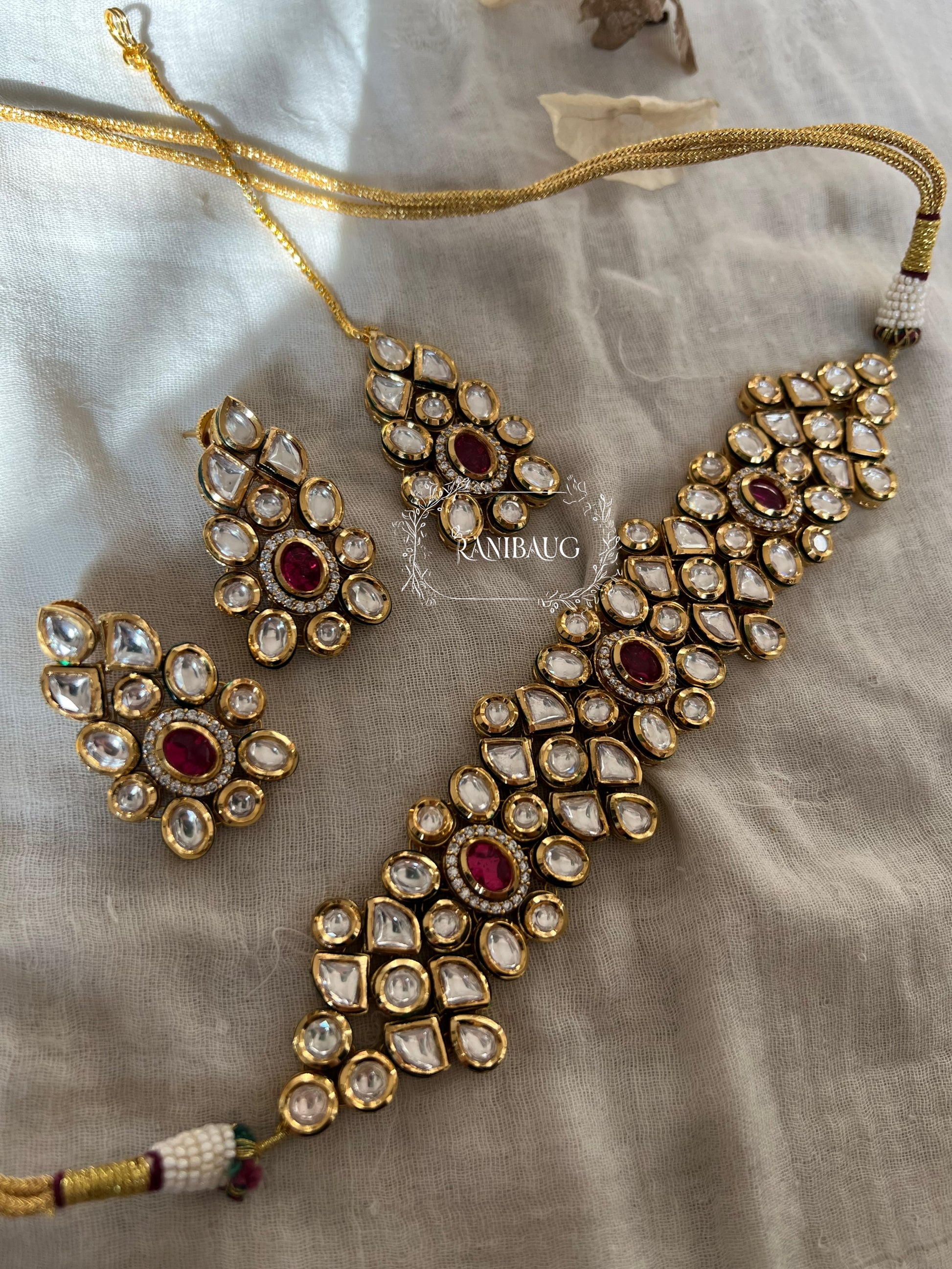 ⦁ The kundan arrangement lends the set high brilliance and a luxurious, lustrous surface.