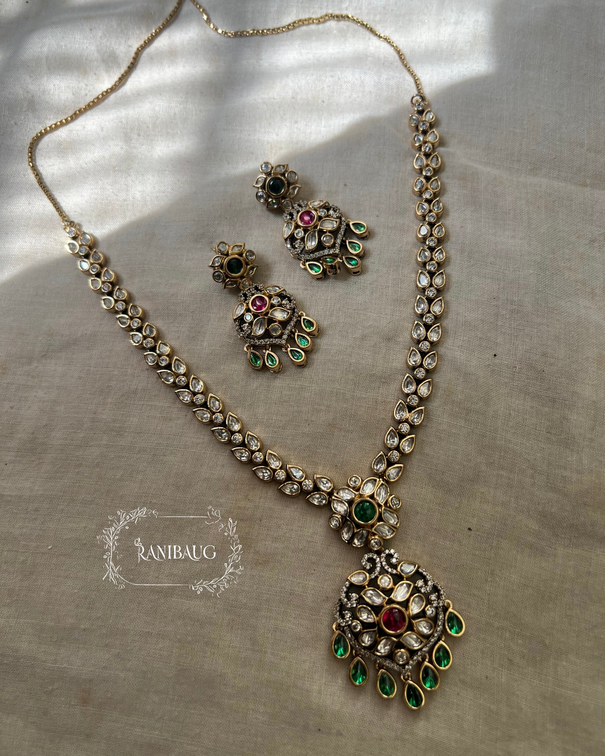 Gayatri Vintage Victorian Mossainite Polki Long Necklace Set By Ranibaug | 2025 2026