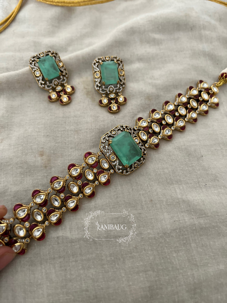 Ranibaug Royal Emerald Polki Choker Set