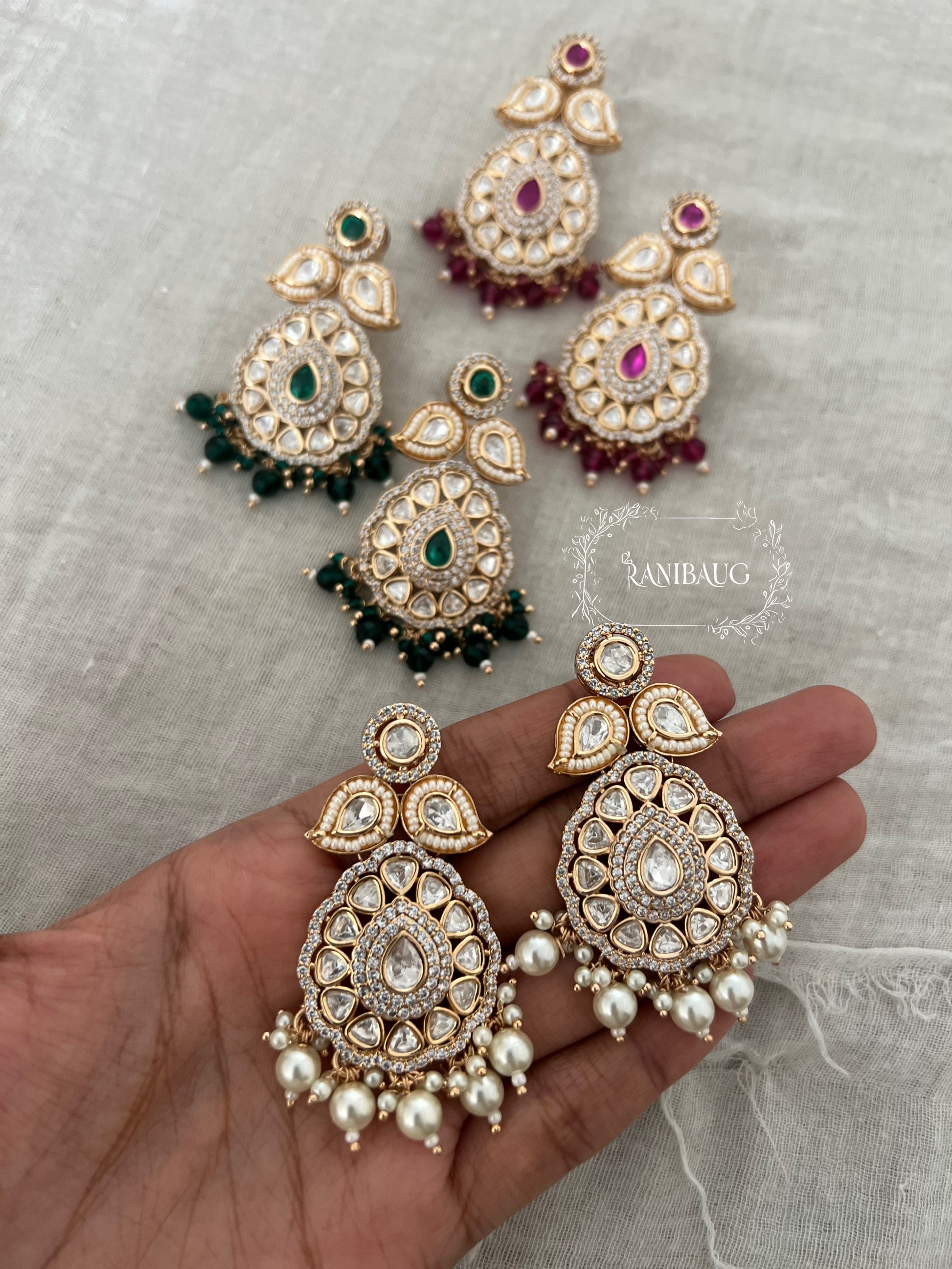 Manikarnika Kundan Earrings With Mossainite Diamond | Ranibaug