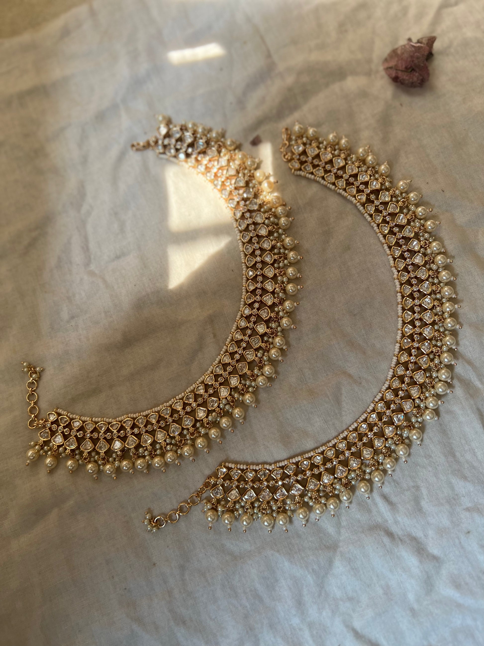Meenakumari Royal Vintage Mossainite Polki Ankle Bracelet Adorned With Shiny Pearl Accents By Ranibaug | A Statement Anklet Jewelry Heavy Bridal Payal 2026 Wedding Jewellery