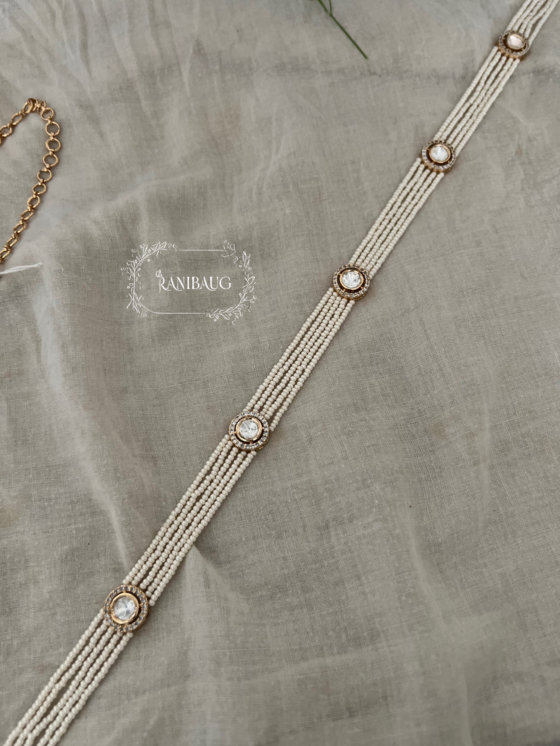 Sachi Mossainite Pearl Chain Kamarbandh By Ranibaug