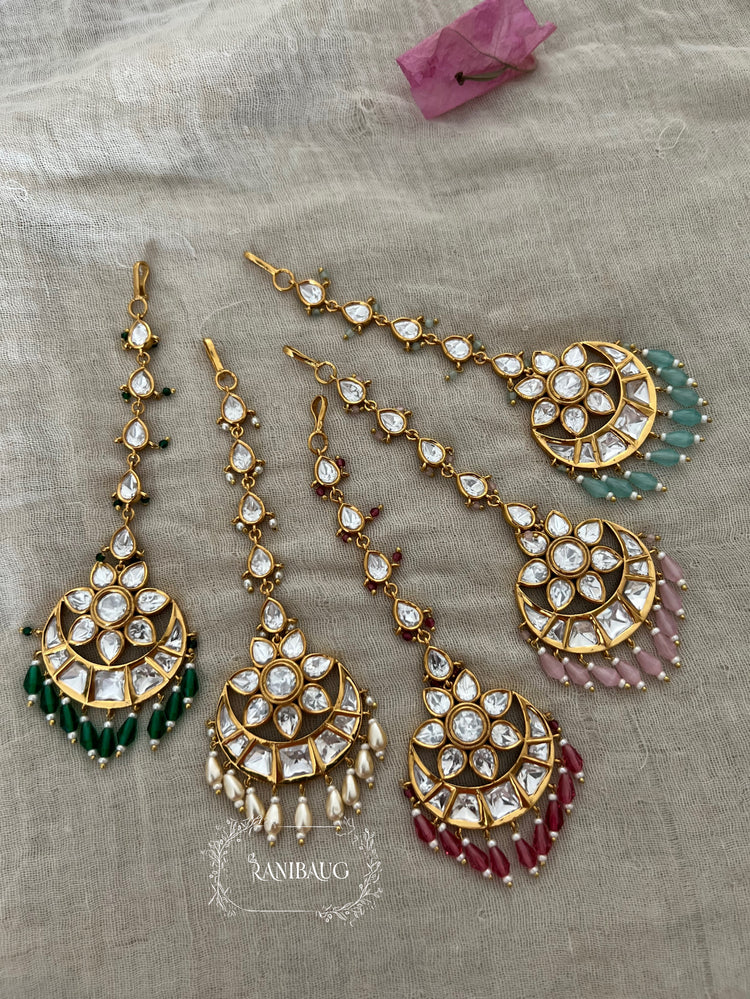 This Ranibaug maang tikka collection is a vibrant showcase of traditional Indian artistry, offering a palette of colors and contemporary detailing ideal for festive, bridal, and fusion looks.