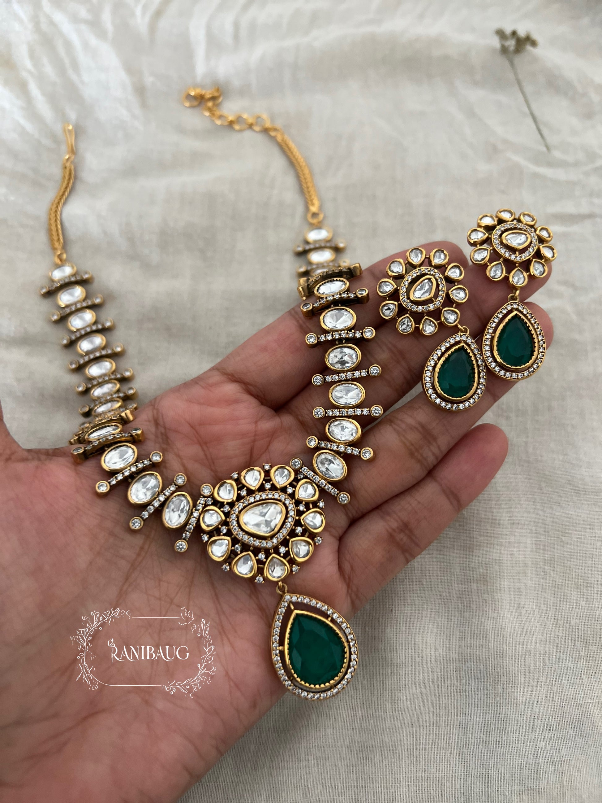 Shivi Mossainite Necklace Set By Ranibaug | Rich Teardrop Motif | Wedding Jewellery 2026