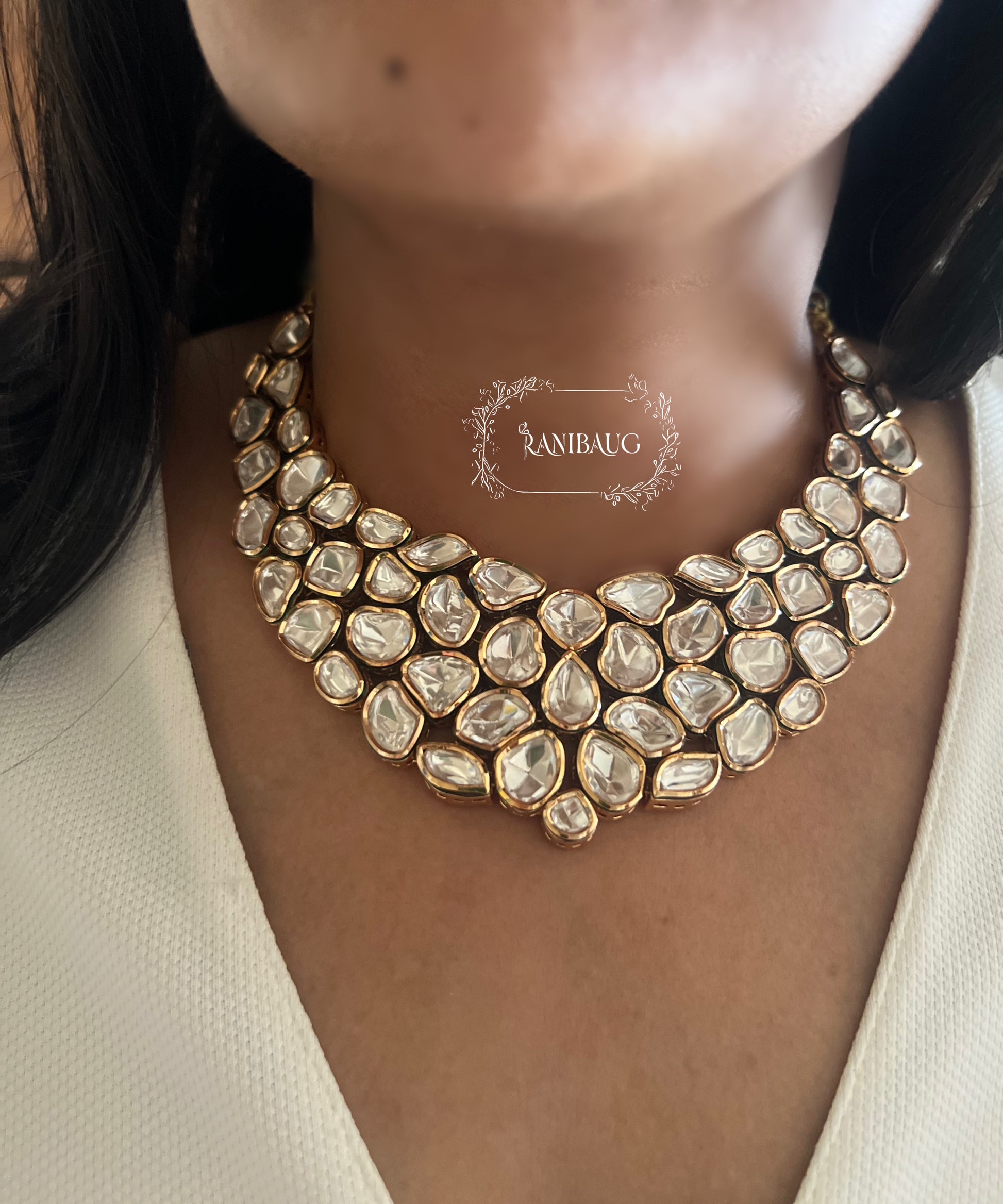 Materials: High-quality brass alloy, uncut polki kundan, American diamonds.