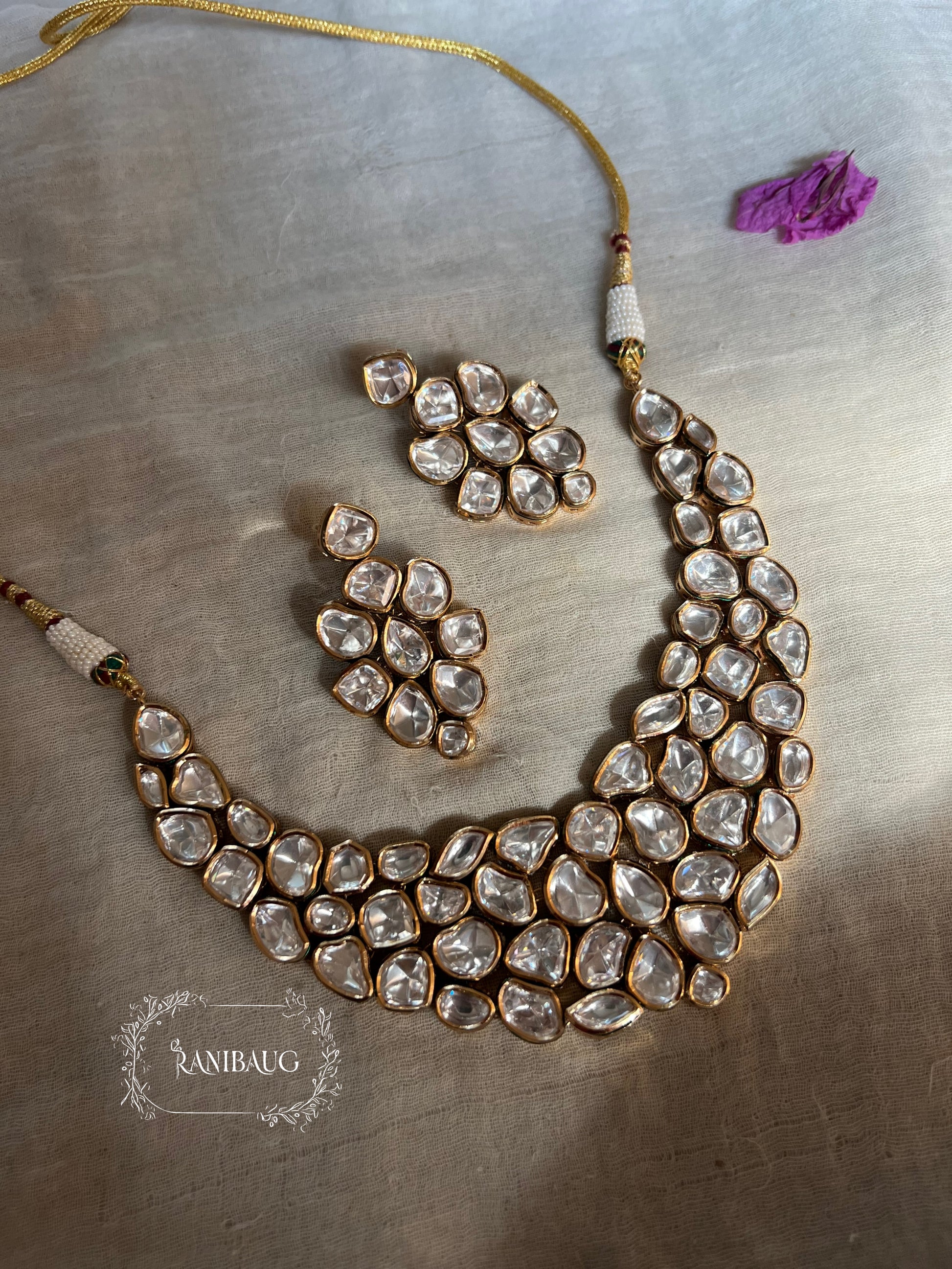 Design: Handcrafted choker necklace and matching cluster earrings.