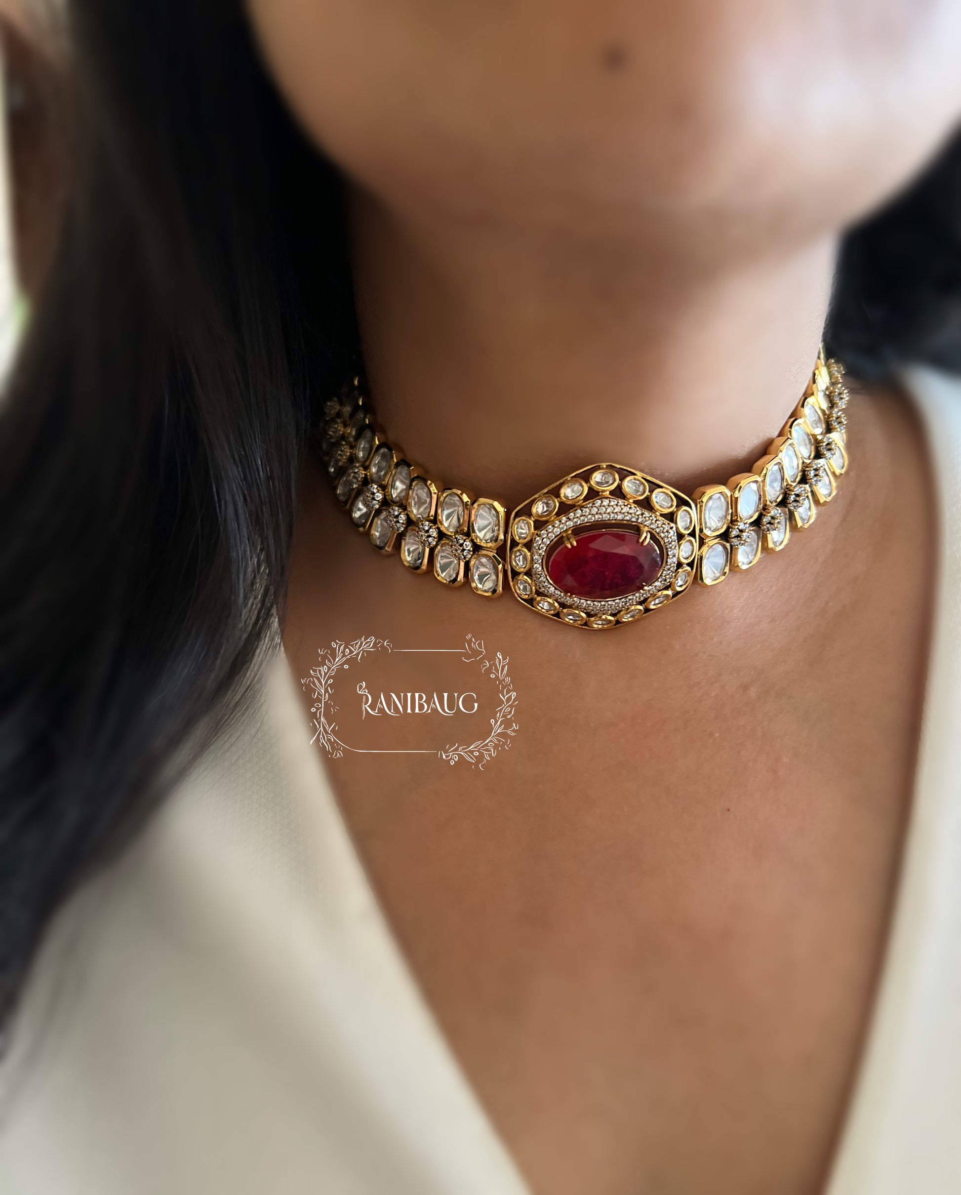 This is the jewelry equivalent of a royal sash worn across the chest of a monarch—bold, defining, and unmistakably powerful. This Ranibaug exclusive reimagines the traditional "Patti" (band) necklace into a versatile masterpiece. It is designed for the "CEO Bride" or the matriarch who values utility as much as beauty. Whether worn as a commanding high-neck choker or wrapped around the wrist as a statement bracelet-cuff, this piece adapts to your command.